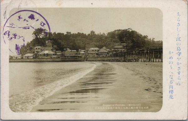 1000168■戦前 絵葉書■江の島名勝 全景入口 記念印 エンタイア