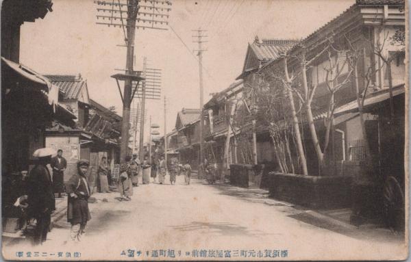 1000186■戦前 絵葉書■横須賀市元町三富屋旅館ヨリ旭町通リチ望ム 画鋲あと