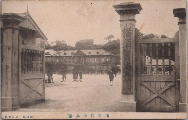 1000199■戦前 絵葉書■横須賀開閉団 画鋲あと