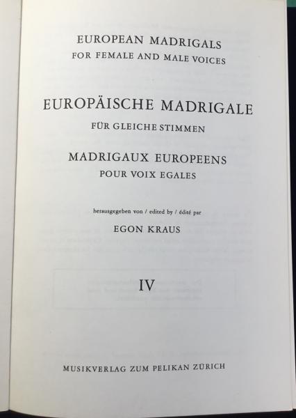 〈海外合唱楽譜〉ヨーロッパのマドリガル4 男声と女声のため