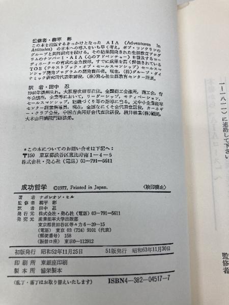 成功哲学: やる気と自信がわいてくる 発心社 ナポレオン ヒル