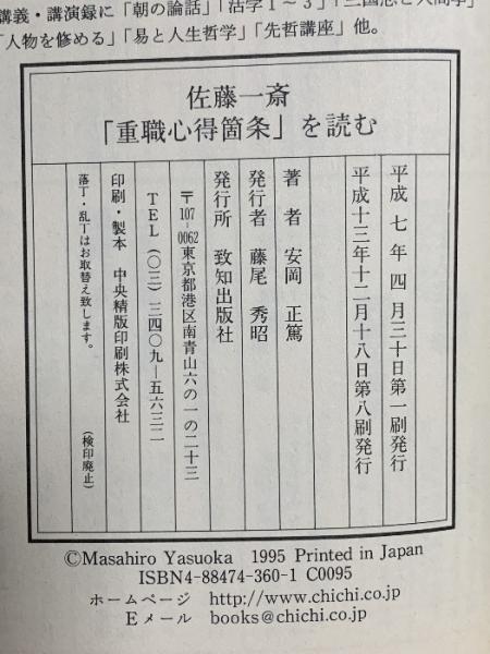 佐藤一斎『重職心得箇条』を読む 致知出版社 安岡 正篤