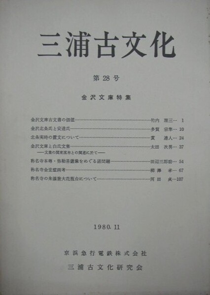 三浦古文化 第28号 金沢文庫特集