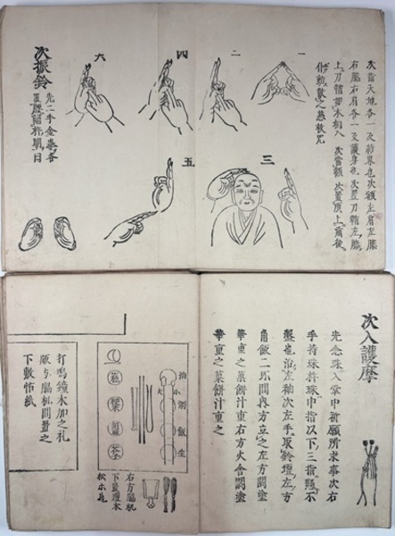 • 解説 (折本・手印図入り)一冊裏表紙欠・一冊表紙傷み題箋欠・シミヨゴレ