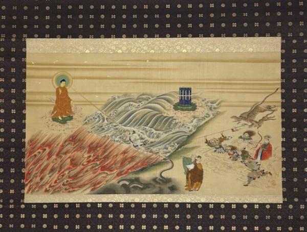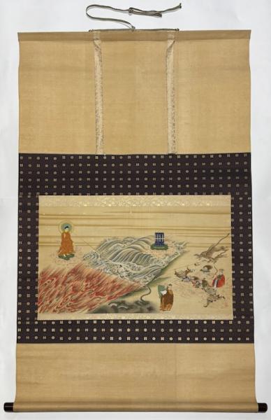 • 解説 掛軸 絹本 掛軸表層上部にやや痛み 発送方法:ゆうパック(国内送料無料)