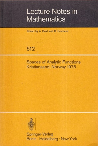 Spaces of Analytic Functions : Seminar Held at Kristiansand, Norway, June 9-14, 1975 <Lecture Notes in Mathematics 512>