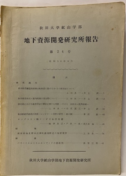 • 出版社 秋田大学鉱山学部