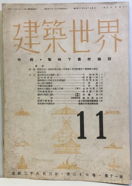 建築世界 昭和18年11月号 戦時下農村施設 <建築世界 37巻11号>