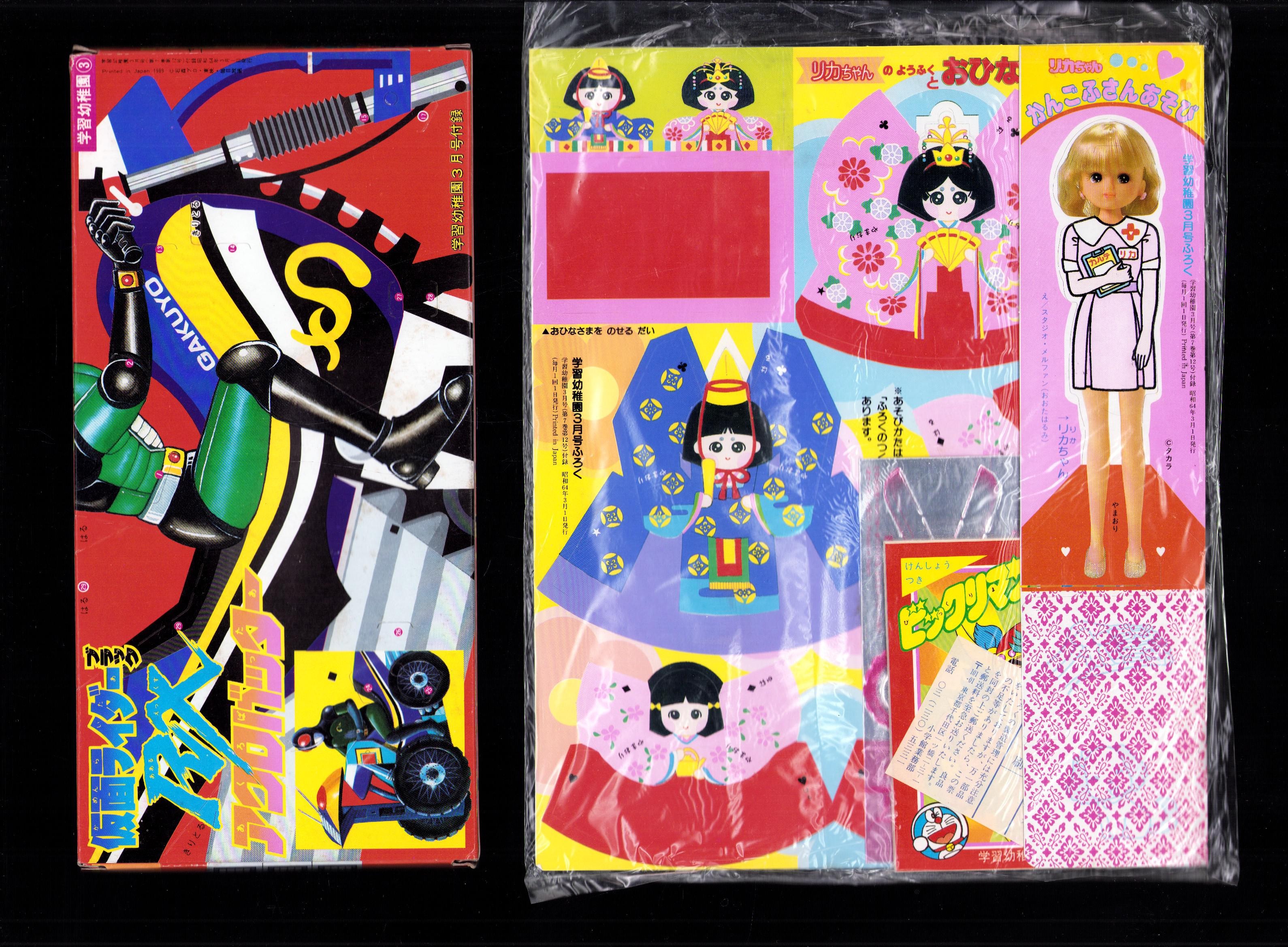 (付録)仮面ライダーブラックRXアクロバッター/リカちゃんかんごふさんあそび/ビックリマン クイズブックほか 4点一括 -学習幼稚園平成1年3月号付録-