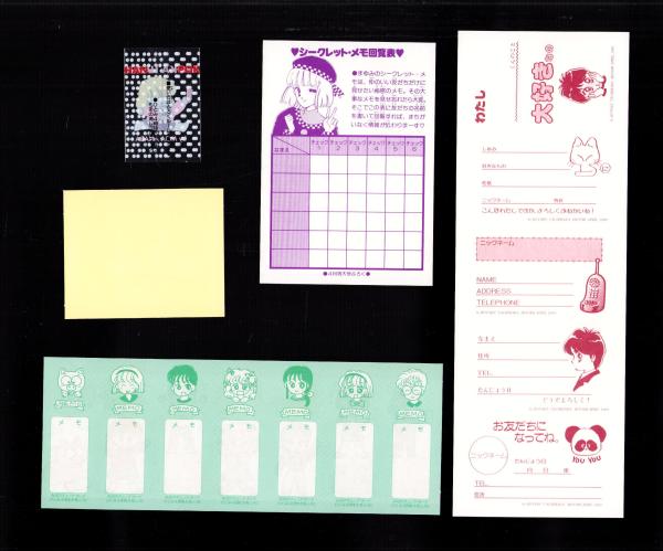 (付録)岡本ゆりのスケニャン時間割り/木花さくやのメイリン・ペンケース/立原ほたるのわたしよろしく名刺ほか 7点一括 -ひとみ平成1年4月号付録-