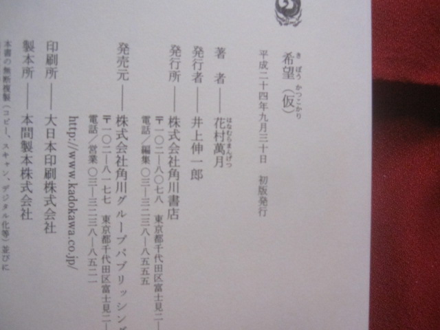 希望 ( 仮 )   きぼう かっこかり    花村萬月  著   角川書店  発行      【文学・小説・芥川賞作家】