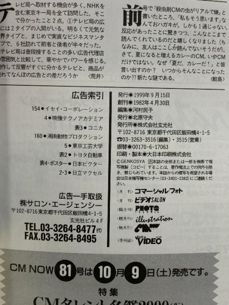 (8) CM NOW シーエム・ナウ VOL.80 平成11年9月15日発行 玄光社 CMのハテナ 吹石一惠 広末涼子 野村佑香 加藤あい