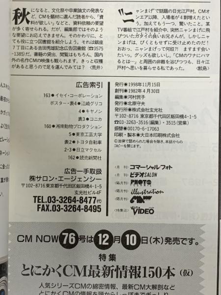 (9) CM NOW シーエム・ナウ VOL.75 平成10年11月15日発行 玄光社 CMタレント名鑑’98~’99 広末涼子 本上まなみ 深田恭子 PUFFY