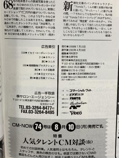 (14) CM NOW シーエム・ナウ VOL.73 平成10年7月15日発行 玄光社 120人の女の子CM 広末涼子 SPEED 本上まなみ 遠藤久美子