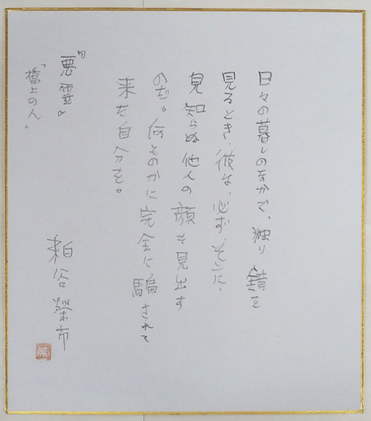 粕谷栄市色紙 鉛筆書落款入