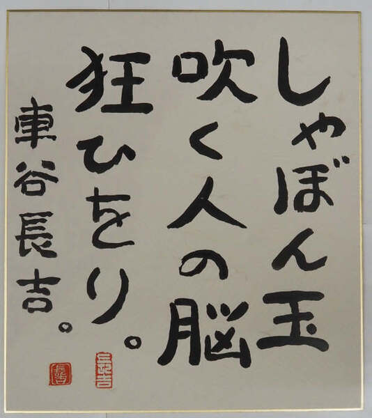 車谷長吉色紙 『しゃぼん玉吹く人の脳狂ひをり。』 毛筆書 落款入