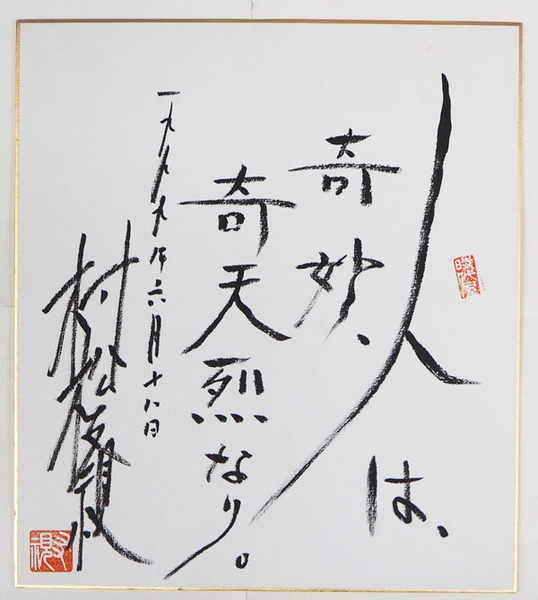 村松友視色紙 『人は、奇妙、奇天烈なり。』 筆ペン書落款入
