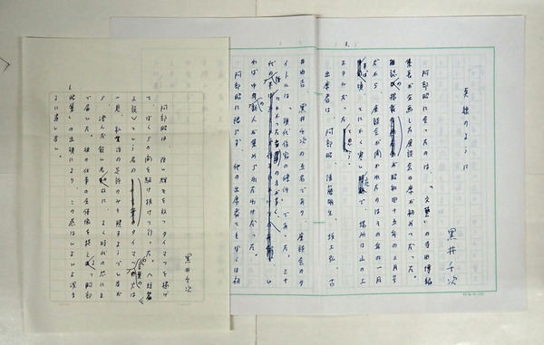 黒井千次草稿 『点線のように』 ペン書四百字詰7枚完 岩波書店「阿部昭集第13巻」月報掲載
