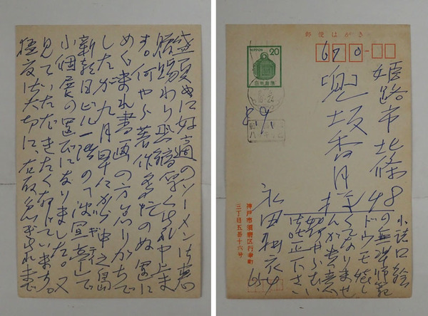 永田耕衣葉書 兜坂香月宛 ペン書9行表面に7行