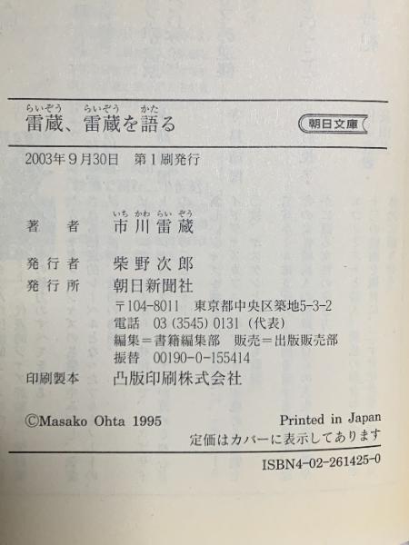 雷蔵、雷蔵を語る 朝日新聞出版 市川 雷蔵