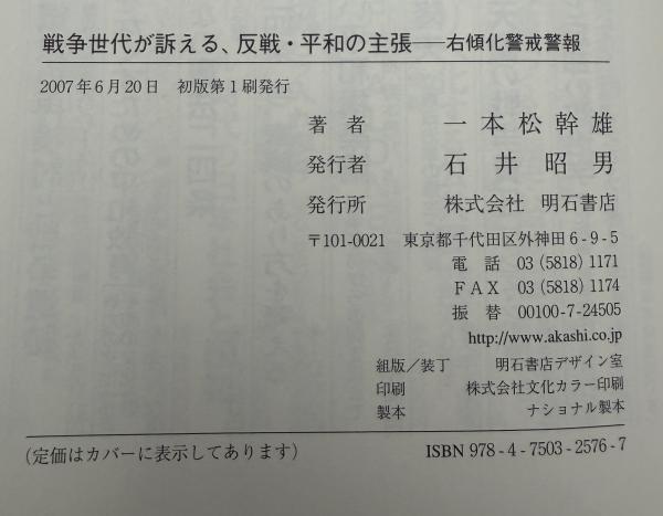 戦争世代が訴える、反戦・平和の主張 : 右傾化警戒警報