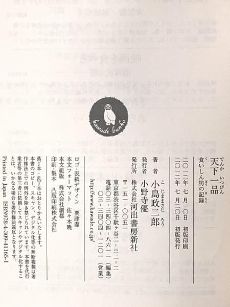 天下一品 ---食いしん坊の記録 (河出文庫) 河出書房新社 小島 政二郎