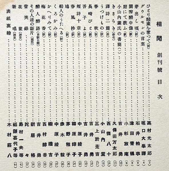 相聞 創刊号 高村光太郎・石井柏亭・吉井勇・中原綾子ほか