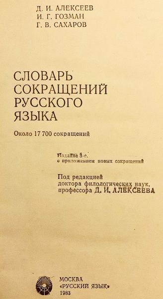 • 解説 【ハードカバー】1983年 第3版、新しい略語の付録付き (Изд. 3-е, с приложением новых сокращений)。