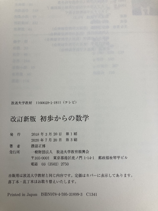 初歩からの数学 (放送大学教材) 放送大学教育振興会 隈部 正博