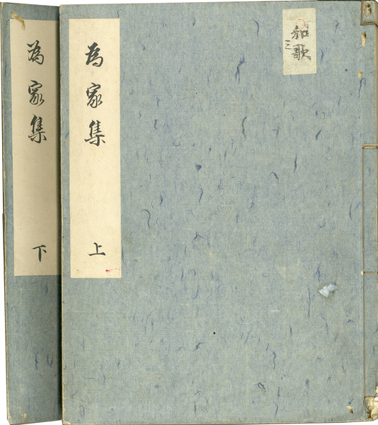 • 解説 内題「大納言為家集」 上96丁 下113丁 大本26.8×20.1糎 水浅葱色表紙 阿波国文庫、有吉保旧蔵 小虫損 拵帙