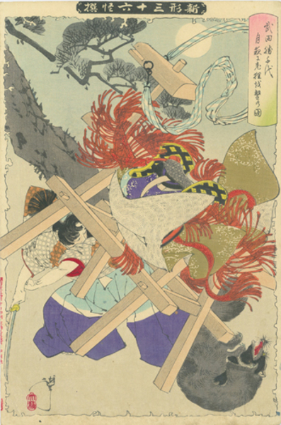 新形三十六怪撰 武田勝千代月夜に老狸を撃の図