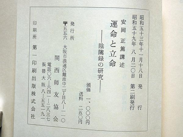 運命と立命 陰隲録の研究 安岡正篤先生講録