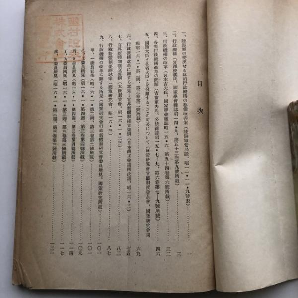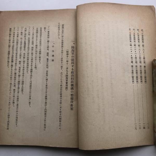 行政機構改革問題に關する資料 商工資料第八十四號(行政機構改革問題資料第一巻)(昭和16年・東京商工會議所)詳しくは目次画像参照