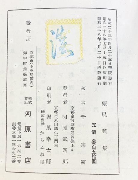 續風興集 発行:河原書店(京都市) 著:千 宗室 昭和28年