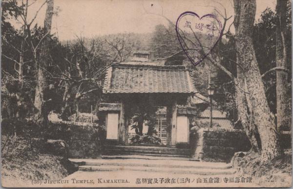 1000208■戦前 絵葉書■箱根名所 鎌倉台福寺 在政子及實朝墓 画鋲あと 記念印