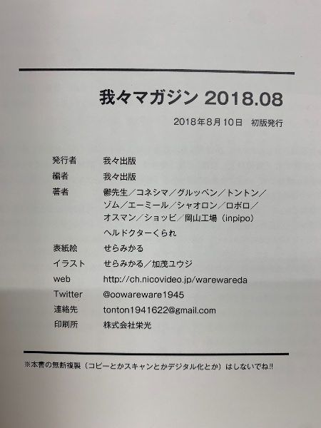 我々マガジン 2018.08