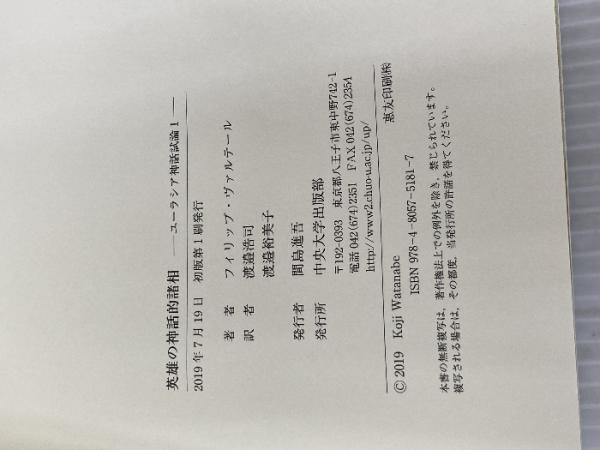 英雄の神話的諸相 中央大学出版部 フィリップ・ヴァルテール