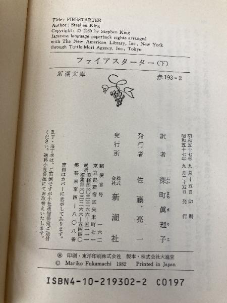 ファイアスターター 下 (新潮文庫 キ 3-2) 新潮社 スティーヴン キング