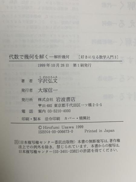 好きになる数学入門〈3〉代数で幾何を解く―解析幾何 岩波書店 宇沢 弘文