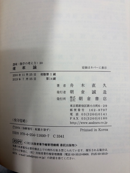 確率論 <講座<数学の考え方> / 飯高茂 ほか編 20> 第14刷