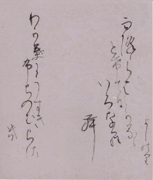 吉澤義則色紙「雨降らはとけてなかるゝいろならむ わか葉にうすきふちのむらさき よしのり」