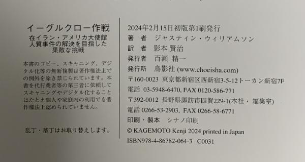 イーグル・クロー作戦: 在イラン・アメリカ大使館人質事件の解決を目指した果敢な挑戦 鳥影社 ジャスティン・ウィリアムソン