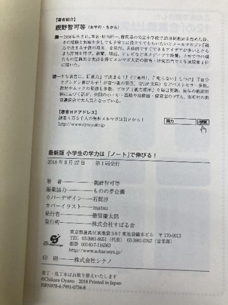 最新版 小学生の学力は「ノート」で伸びる! すばる舎 親野智可等