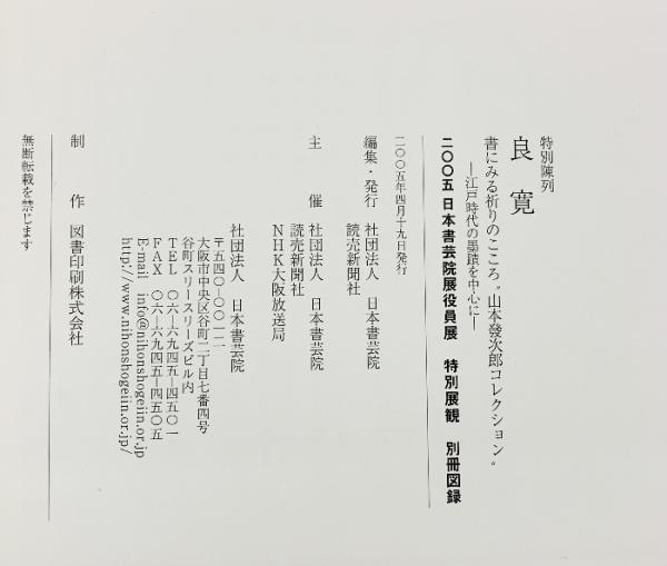 【図録】特別陳列『良寛』2005 日本書芸院展役員展 特別展覧 別冊図録-江戸時代の墨蹟を中心に- 日本書芸院 読売新聞社
