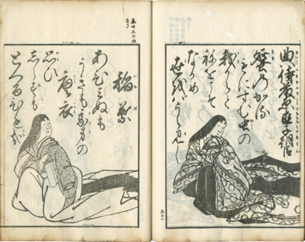 • 解説 岡村屋庄助板 和歌と肖像入計130人 大本26×18糎 表紙全体渋塗り 小虫損 しみ