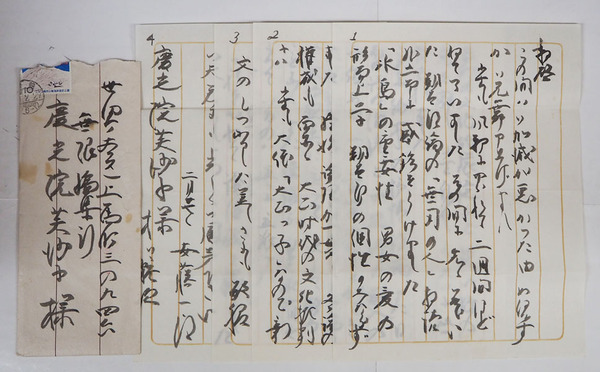 • 解説 無限編集部・慶光院芙沙子宛 毛筆書4枚 封付 【状態に関する注意】けやき書店の掲載品は全て、状態に関わらず「中古品(並)」と表示されています。「日本の古本屋」は6段階の「状態」表記が必須となりましたが、当店の扱う商品の特質上、状態の簡易な区分けは適切ではない(不可能な)為、状態欄の「中古品(並)」という表現は考慮にいれないで下さい。痛みなどの瑕疵につきましては、解説欄等をご参考にして下さい。状態表記の無いものは特に問題なく良好とお考え下さい。: