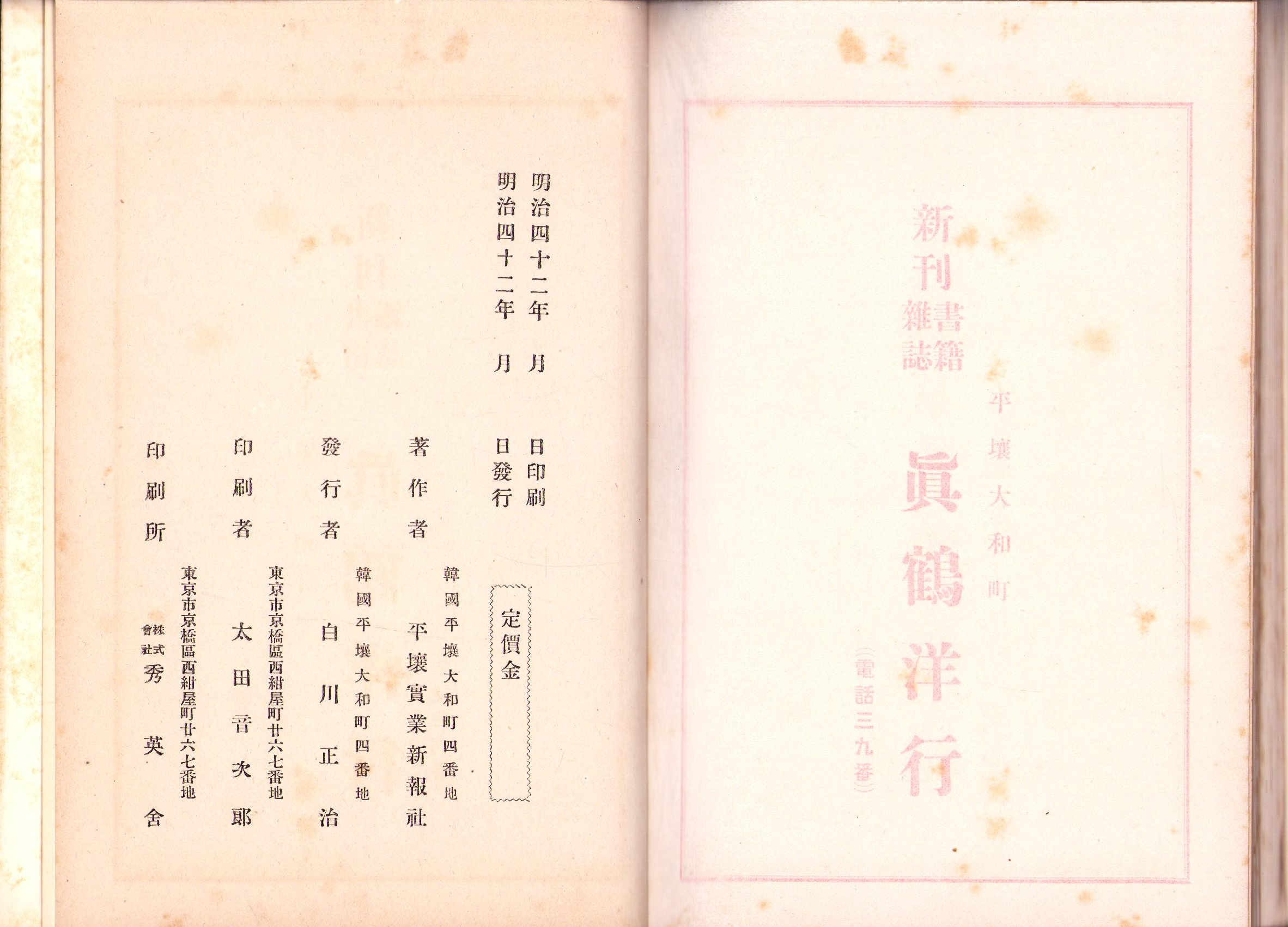 • 出版社 発行者・白川正治(韓国平壌)