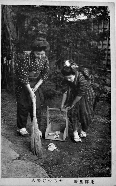 絵葉書 モノクロ写真版3枚 冬の米澤大町通り/米澤風俗たちつけ美人2種 戦前