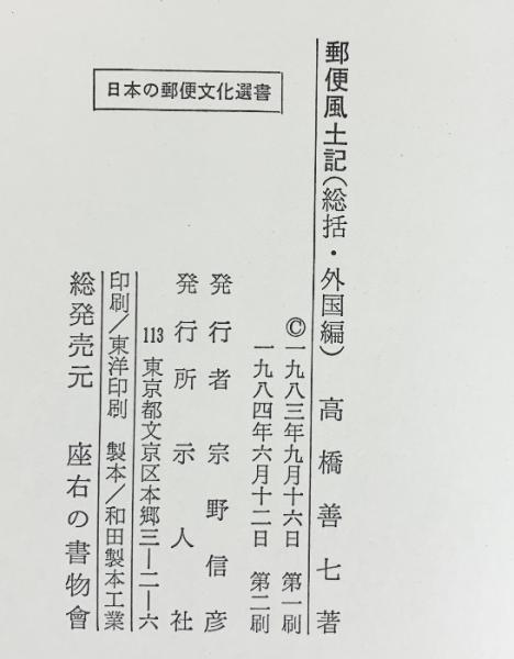 郵便風土記(総括・外国編)日本の郵便文化選書 発行:示人社 著:高橋善七 1984年