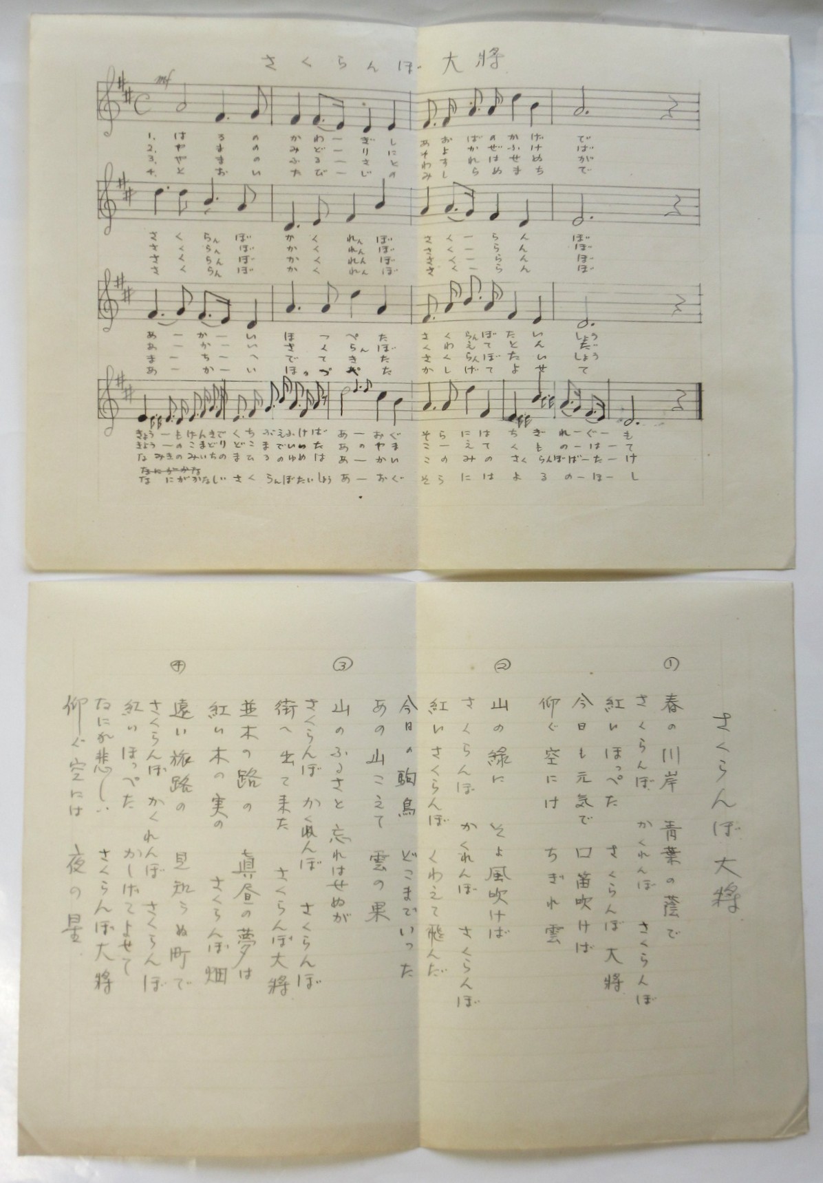 「さくらんぼ大将」手書き楽譜/歌詞